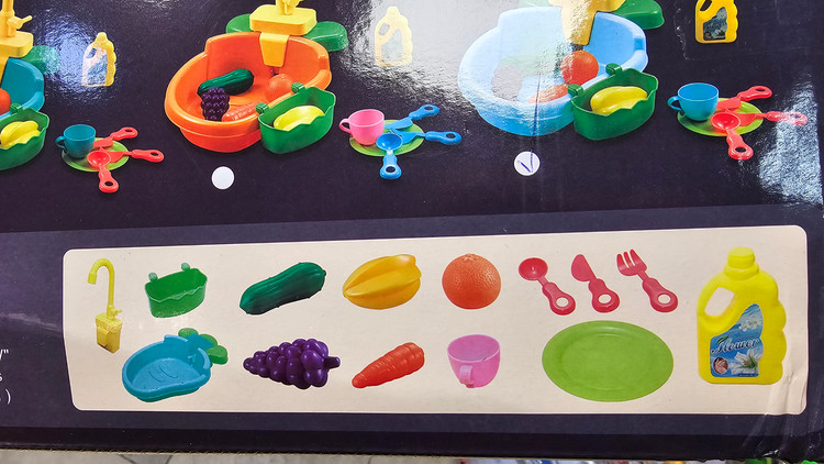 اقلام همراه: ظروف آشپزخانه بهمراه میواه های پلاستیکی و جای مایع ظرفشویی