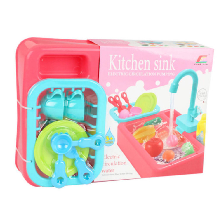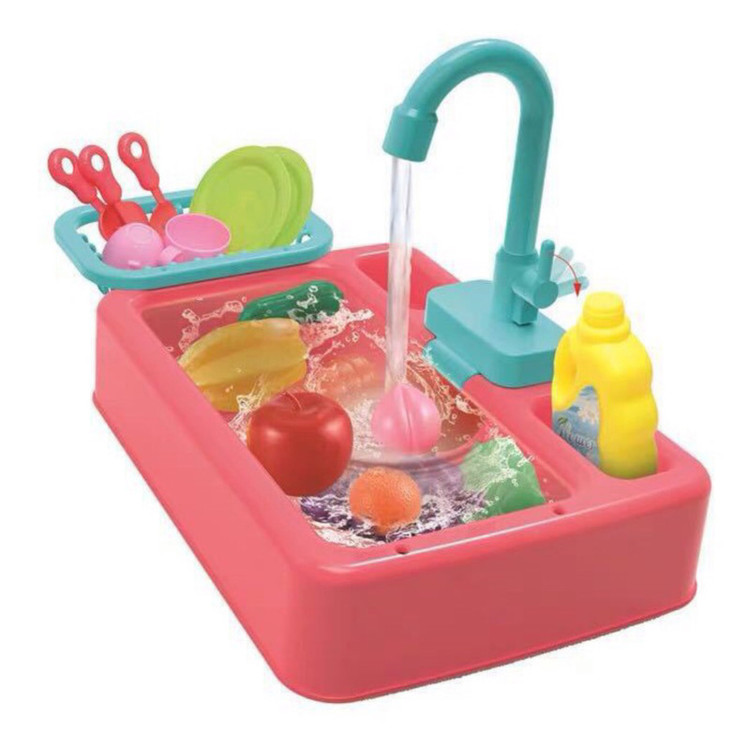 سینک ظرفشویی یک اسباب بازی مهیج و سرگرم کننده است که کودک با شستشوی ظروف و میوه ها حس خوبی را تجربه می کند. با ریختن آب داخل سینک و چرخاندن شیر آب، پمپ آب که توسط دو عدد باطری قلمی تغذیه می شود روشن شده و آب را از دهانه شیر آب سرازیر می کند و کودک می تواند با قرار دادن ظروف و میوهجات که داخل بسته بندی قرار دارد ، شروع به شستن آنها کند. این محصول یک هدیه جذاب و جدید برای کودکان شماست خرید این محصول را به شما پیشنهاد می کنیم