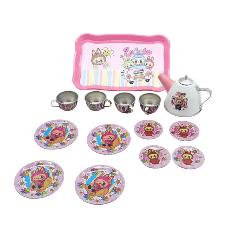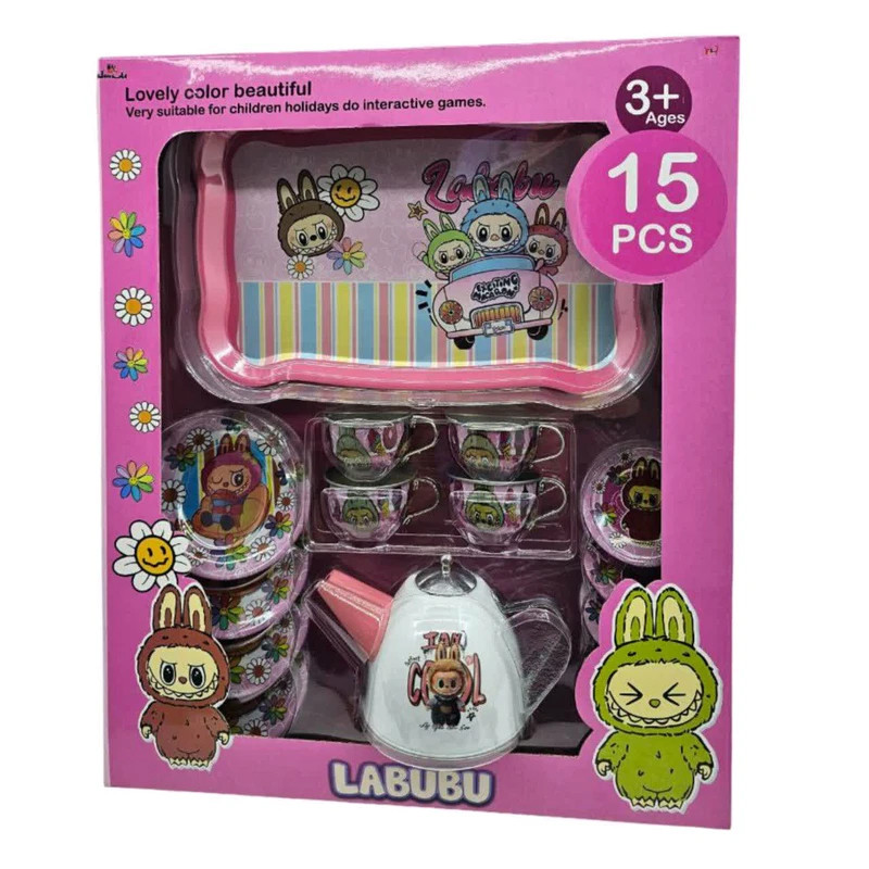 اسباب بازی ست چایخوری فلزی لبوبو مدل BOUTIQUE TEA SET LABUBU مجموعه 15 عددی یک ست چایخوری با اقلام همراه: 4 عدد فنجان ، 4 عدد نعلبکی ،4 عدد پیش دستی، 1 عدد سینی، 1 عدد قوری یک اسباب بازی جذاب و زیبا برای خاله بازی کودکان شما میباشد که از جنس فلزی میباشد و میتواند ساعتها کودک شما را مشغول بازی با دوستان خود و سرگرم نماید