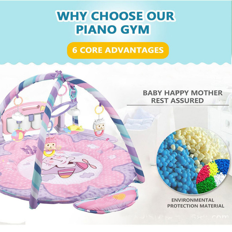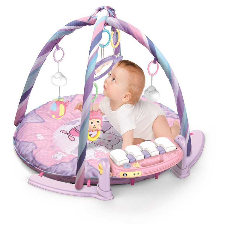 تشک بازی پیانو هانگر huanger از سری پلی جیم های پیانودار و موزیکال است که برای سرگرمی و بازی کودکان مورد استفاده قرار می گیرد. این محصول برای نوزادان از بدو تولد قابل استفاده است و برای سرگرم کردن کودک تا سه سالگی نیز می توانید از آن بهره ببرید. این تشک بازی نوزاد موزیکال است و دارای یک ارگ است و قابلیت پخش آهنگ برای کودک دارد. ویژگی های تشک بازی پیانو هانگر huanger تشک بازی نوزاد یا پلی جیم نوزاد از جمله اسباب بازی هایی است که برای کودکان زیر دو سال طراحی شده اند. با استفاده از تشک بازی می توانید نوزاد را مدت زیادی سرگرم کنید. همچنین یک محیط امن و راحت برای نوزاد به شمار می رود. و از نوزاد در هنگام بازی کردن و دراز کشیدن محافظت می شود. زیرا کودک در این سن در هنگام بازی کردن ممکن است اشیا را به دهان ببرد و یا به وسایل خطرناک دست بزند. ولی بر روی تشک بازی, کودک با اسباب بازیهای موجود بر روی آن بازی می کند و سرگرم میشود و والدین با خیال راحت می توانند تشک را به همراه کودک را نزدیک خود قرار دهند. تشک بازی پیانو هانگر huanger یک تشک بازی با ابعاد مناسب است که برای کودک از بدو تولد تا سه سالگی قابل استفاده می باشد. این تشک بازی دارای تشک نرم و راحت از جنس پلی استر می باشد که قابلیت شستشو نیز دارد. این تشک به صورت بیضی شکل است و مناسب با پوست حساس کودکان و کاملا ضد حساسیت می باشد. این تشک بازی موزیکال است و دارای یک ارگ با 4 عدد دکمه پانو بر روی آن است که با فشردن هر یک از آنها آهنگاهی متفاوتی پخش می شود. پخش موسیقی برای نوزاد و کودک بسیار جذاب است. و هنگامی که نواد در حالت خوابیده بر روی تشک قرار دارد با لگد زدن پیانو باعث پخش شدن آهنگ می شود. و باعث تقویت حس شنوایی نوزاد می ضود. و همچنین تشویق می شود دوباره به آن لگد بزند و باعث تقویت عضلات نوزاد می شود. این پیانو به صورت افقی و عمودی بر روی تشک قابل تغییر است.